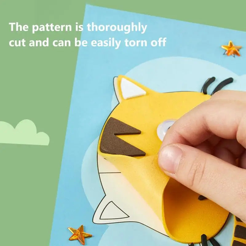 Handmade stickers that require layering help cultivate operational skills, hand-eye coordination, and observational skills. The sticker puzzle enhances color recognition, exercises imaginative thinking, and improves problem-solving abilities.