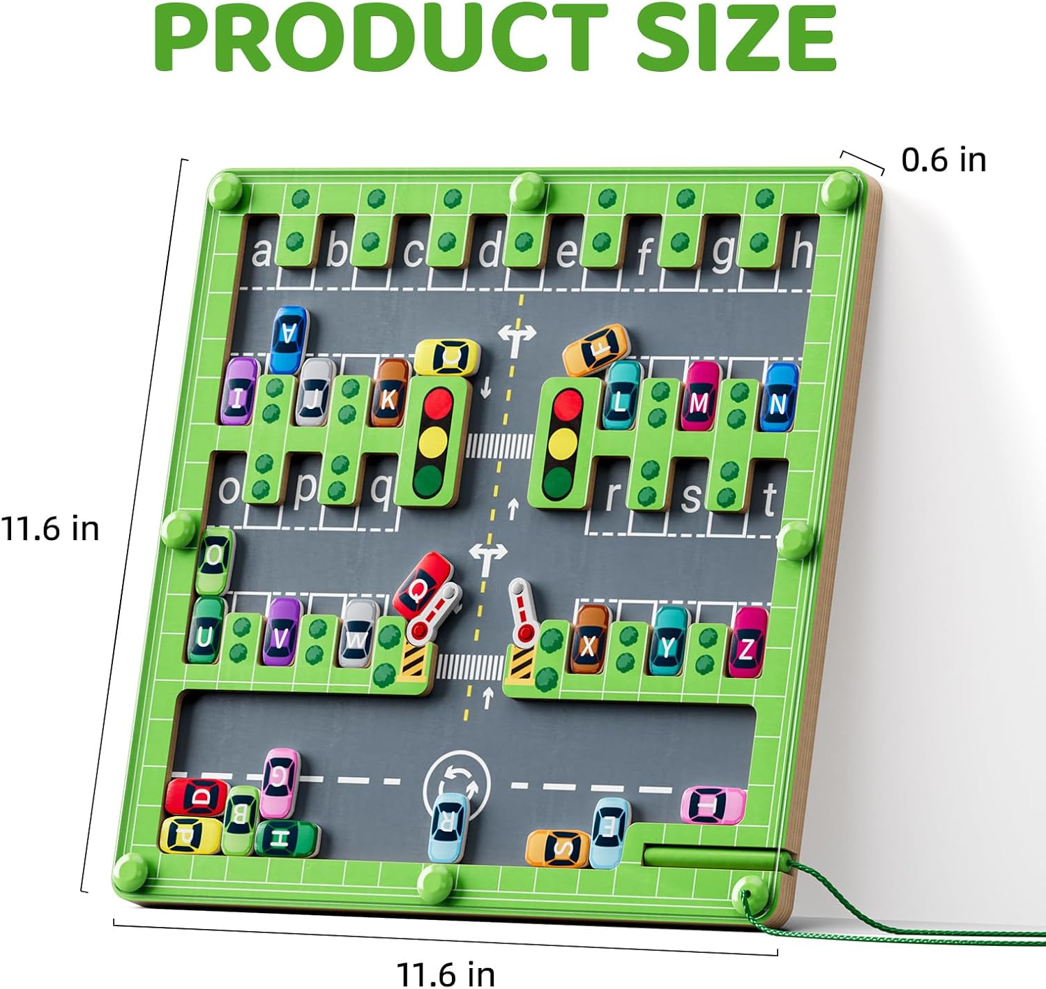 The Montessori Magnetic Alphabet Maze combines learning and play with a unique design featuring magnetic cars and built-in parking spaces for each letter. This sturdy, engaging maze helps children recognize and match letters while boosting their fine motor skills. It’s the perfect tool for making learning the alphabet fun and interactive!