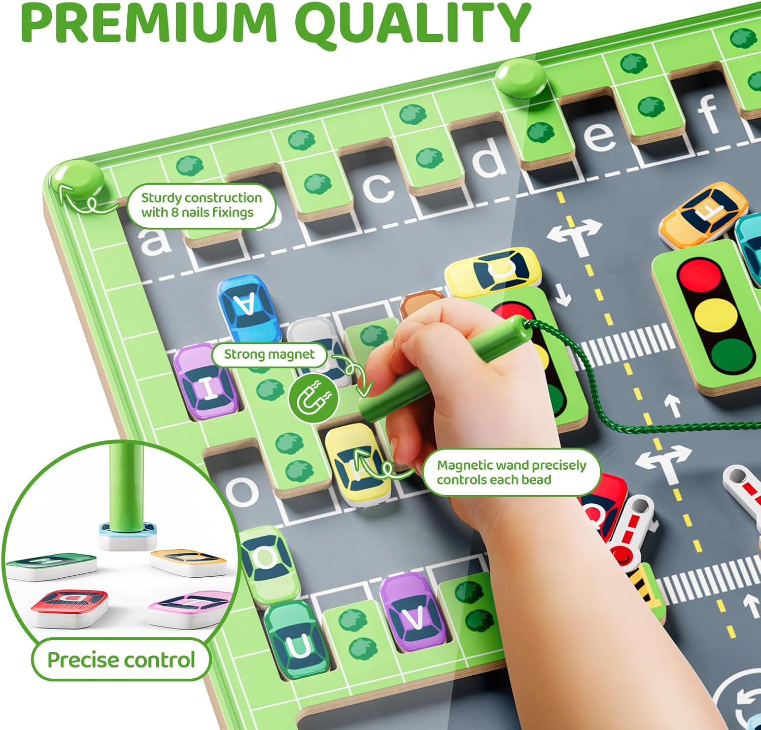 - Encourages letter recognition: Kids match colorful magnetic cars to each letter, making early reading skills easy and fun.